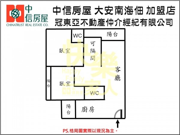 - 格局:3房 2廳 2衛