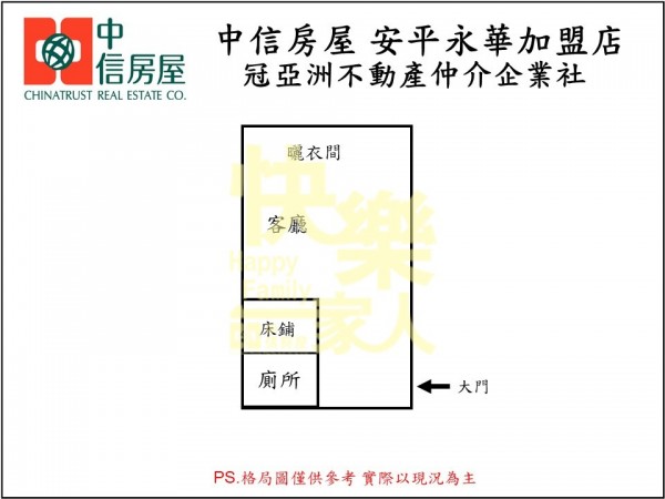 - 格局:1房 1廳 1衛