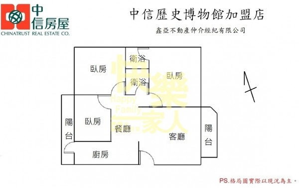 - 格局:3房 2廳 2衛