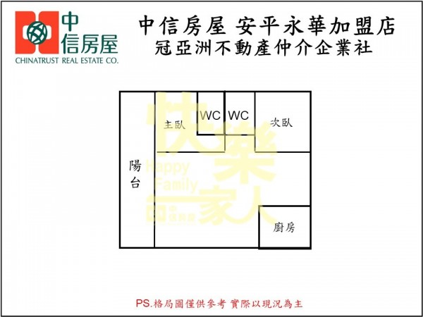 - 格局:3房 2廳 2衛