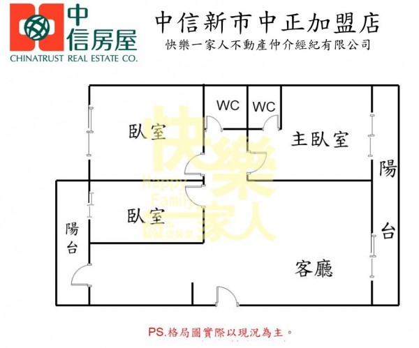 - 格局:3房 2廳 2衛