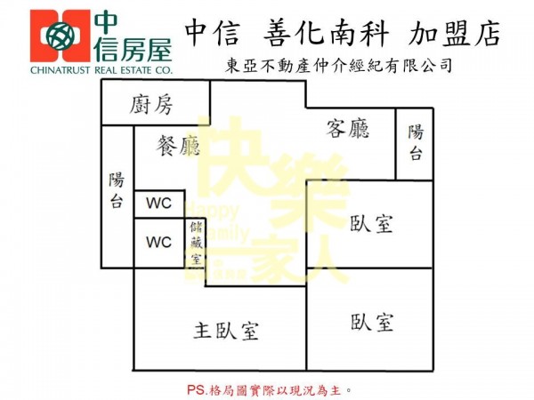 - 格局:3房 2廳 2衛