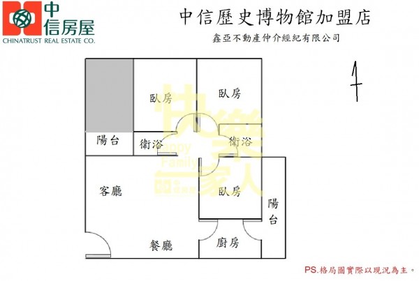- 格局:3房 2廳 2衛