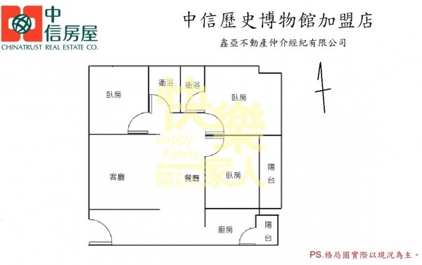 - 格局:3房 2廳 2衛